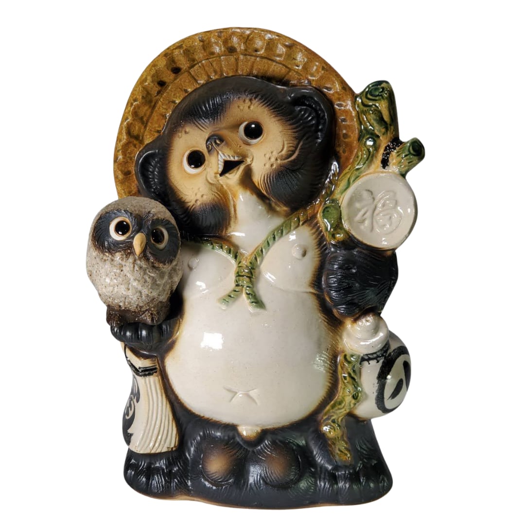 陶器ならではの滑らかな質感が楽しめるこの傘立ては、機能性とデザイン性をしっかりと兼ね備えています。どの角度から見ても愛らしいふくろうと狸の姿が、あなたの玄関を華やかに彩り、日常生活に喜びのアクセントを加えます。