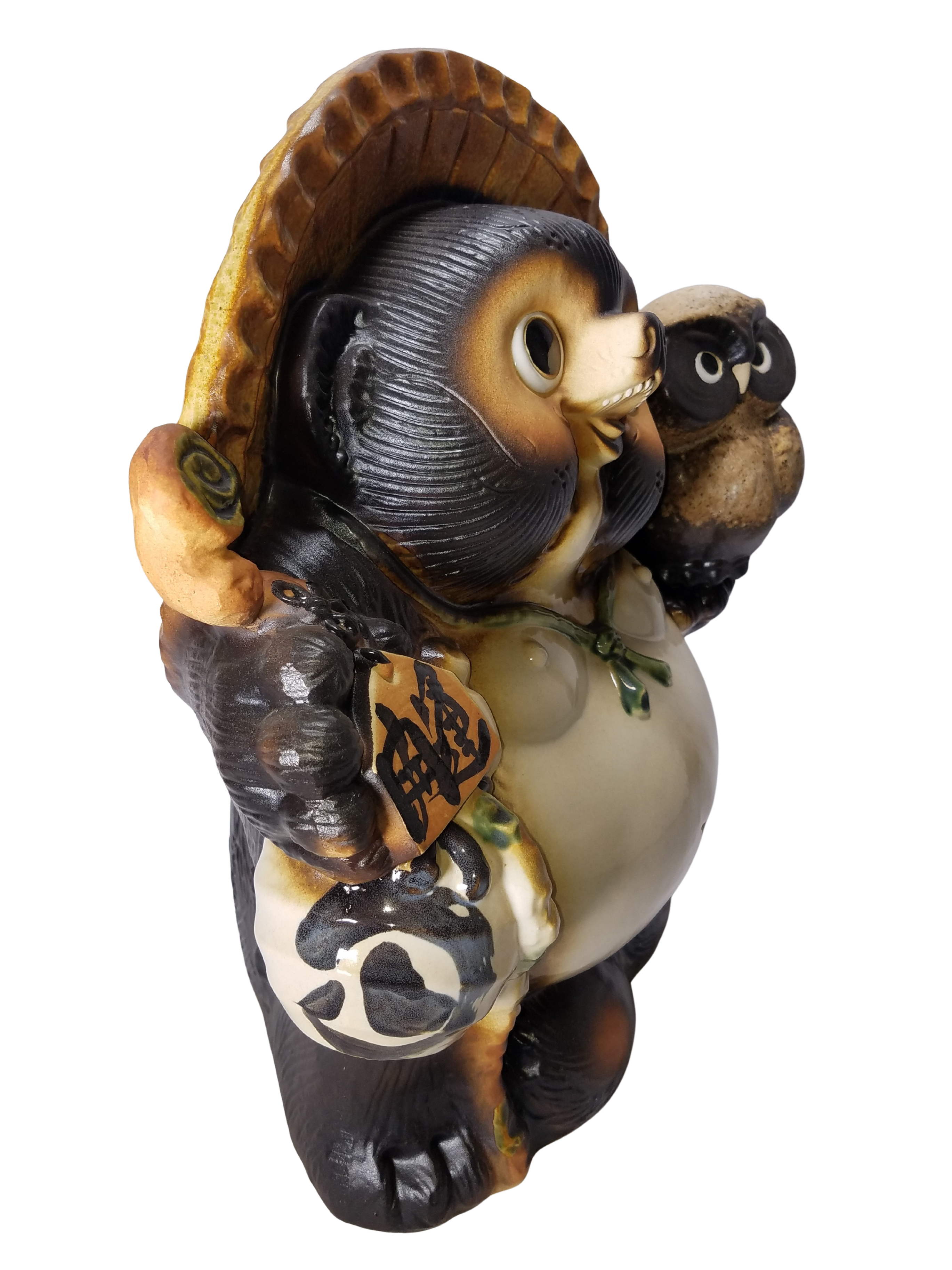 ■商品名:信楽焼 ふくろう付開運狸 13号