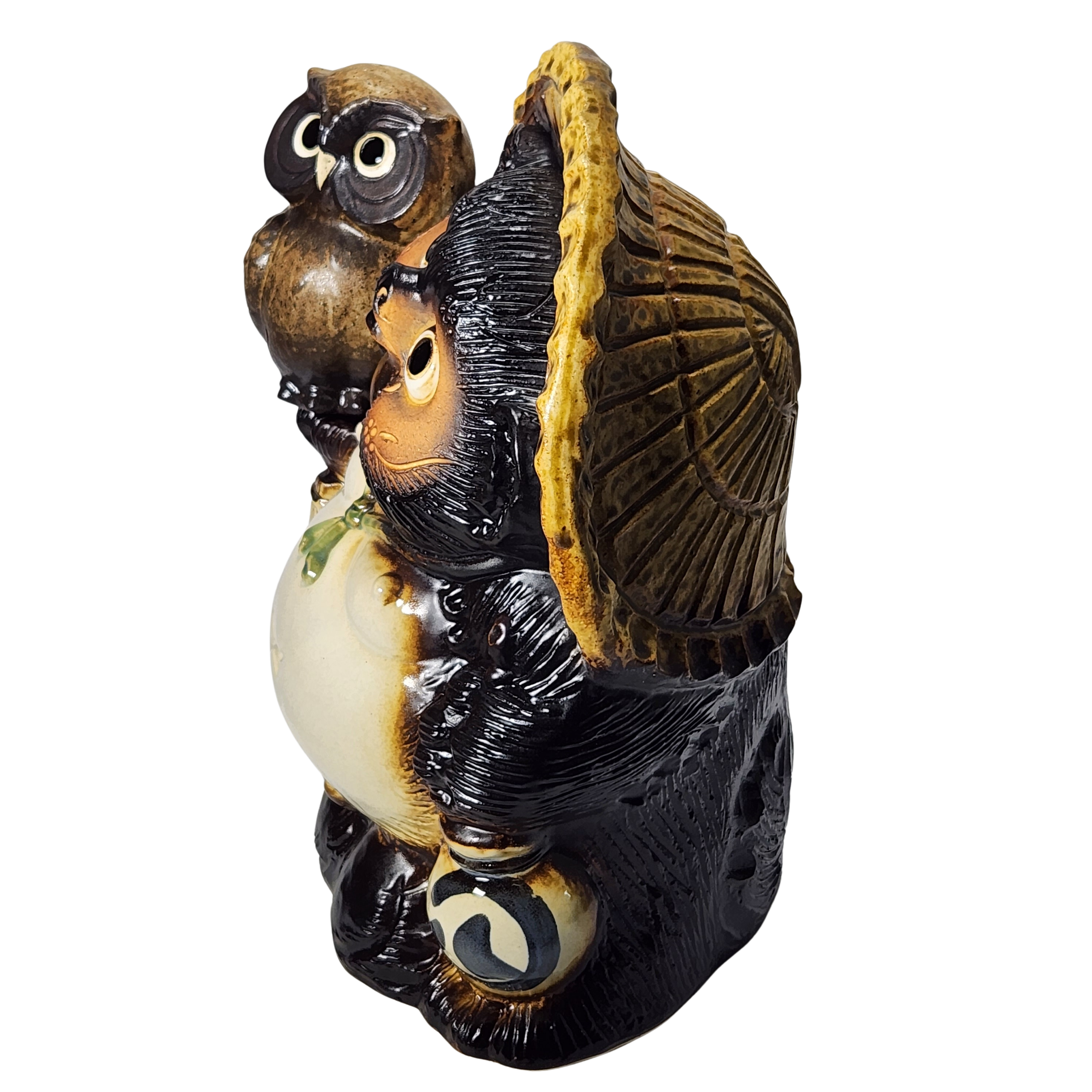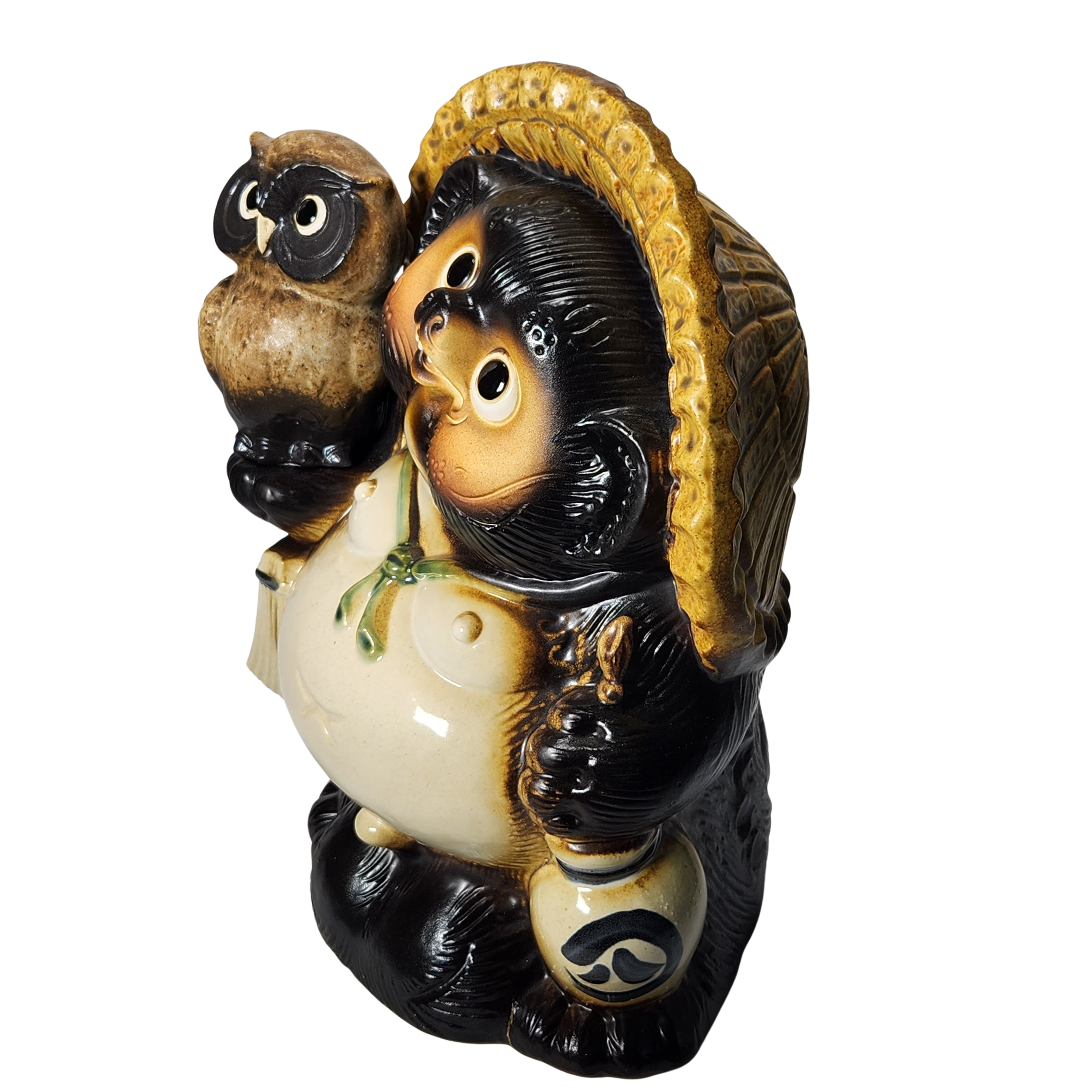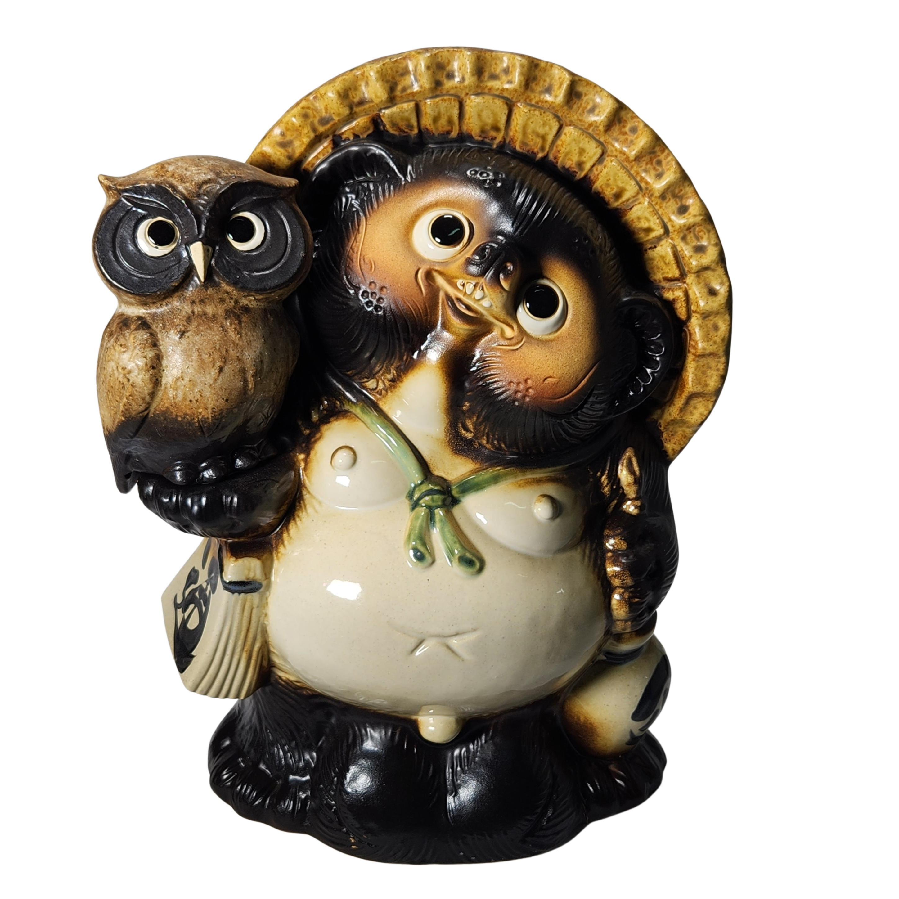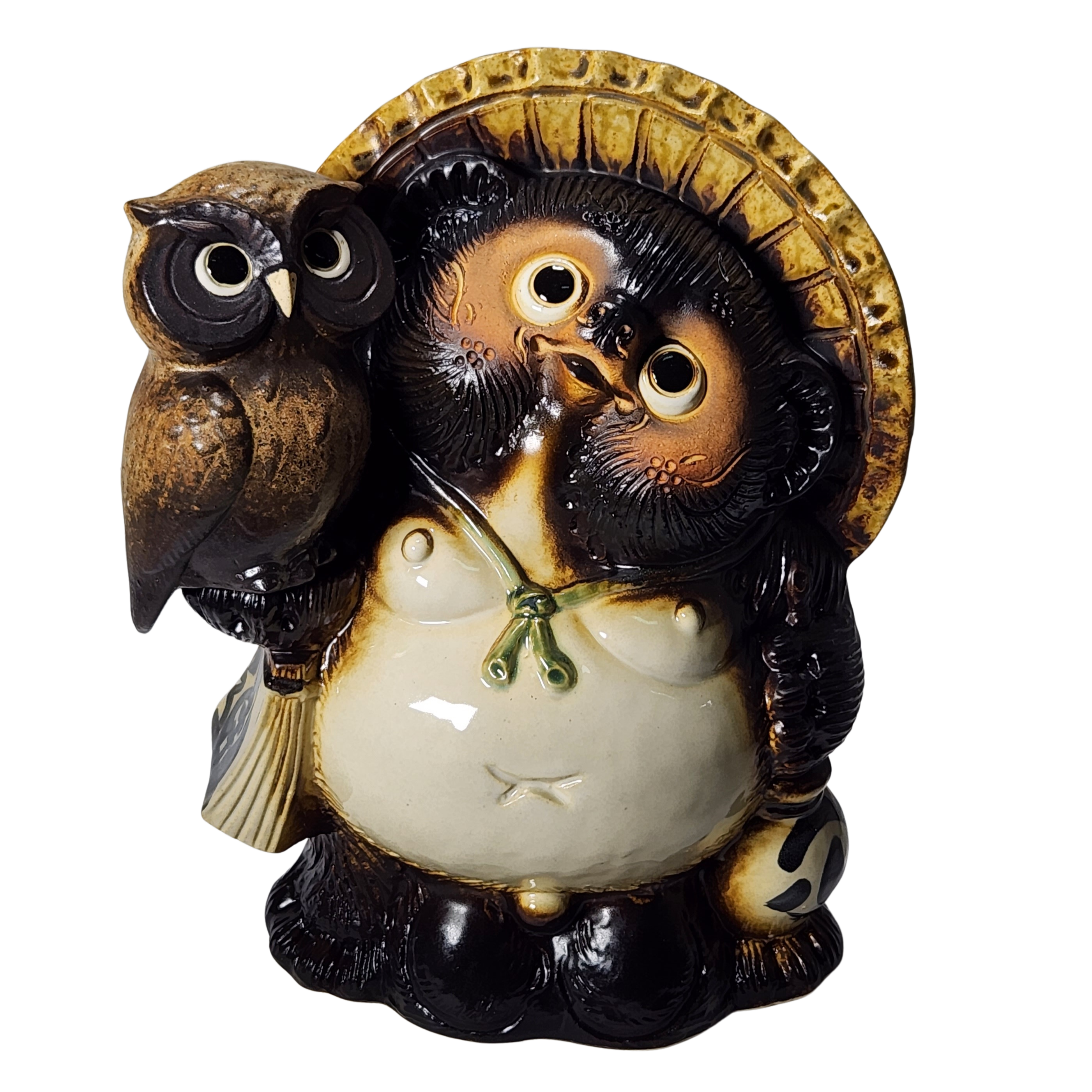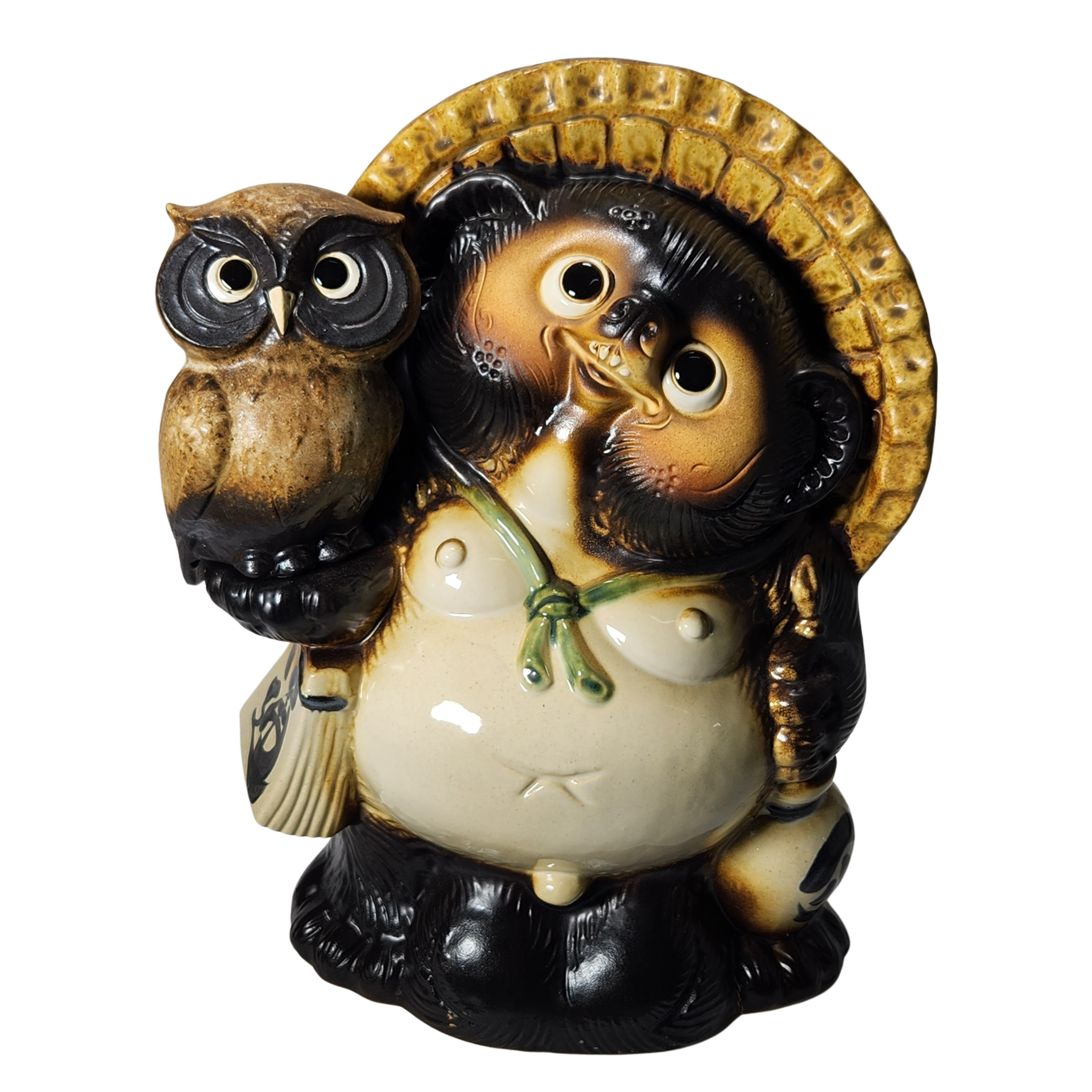 ふくろう付狸 10号 (信楽焼き・陶器・たぬき・タヌキ・置物・B082-03)