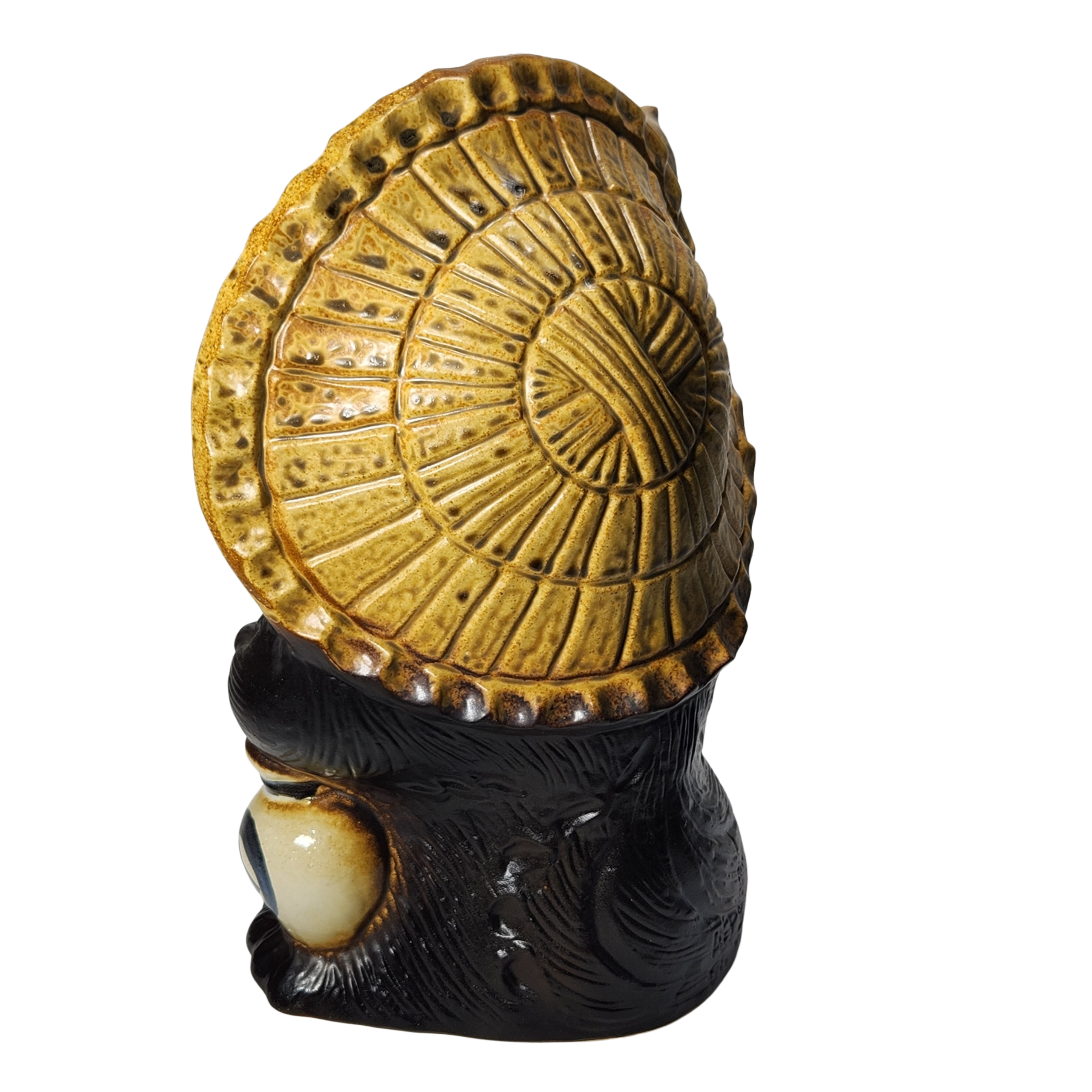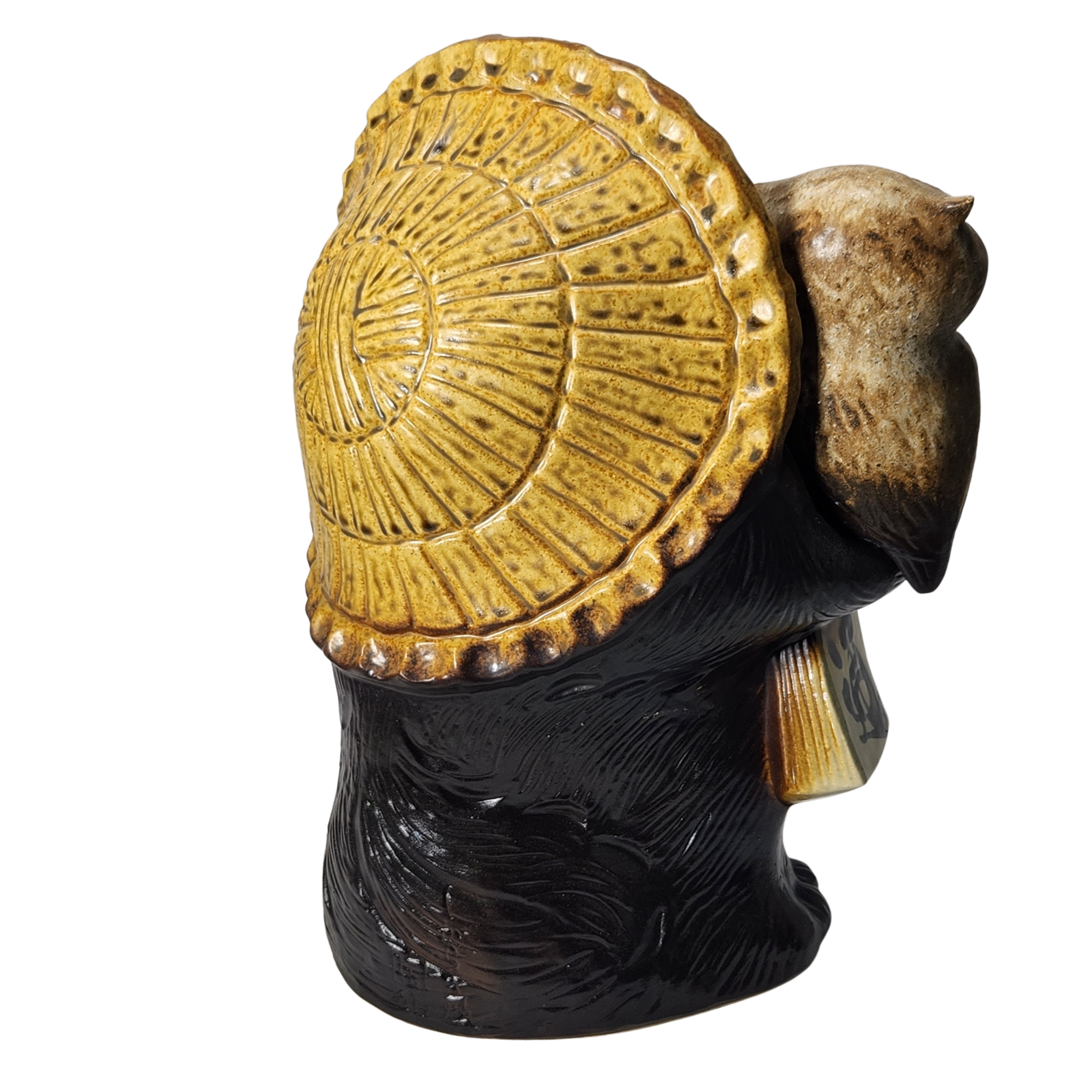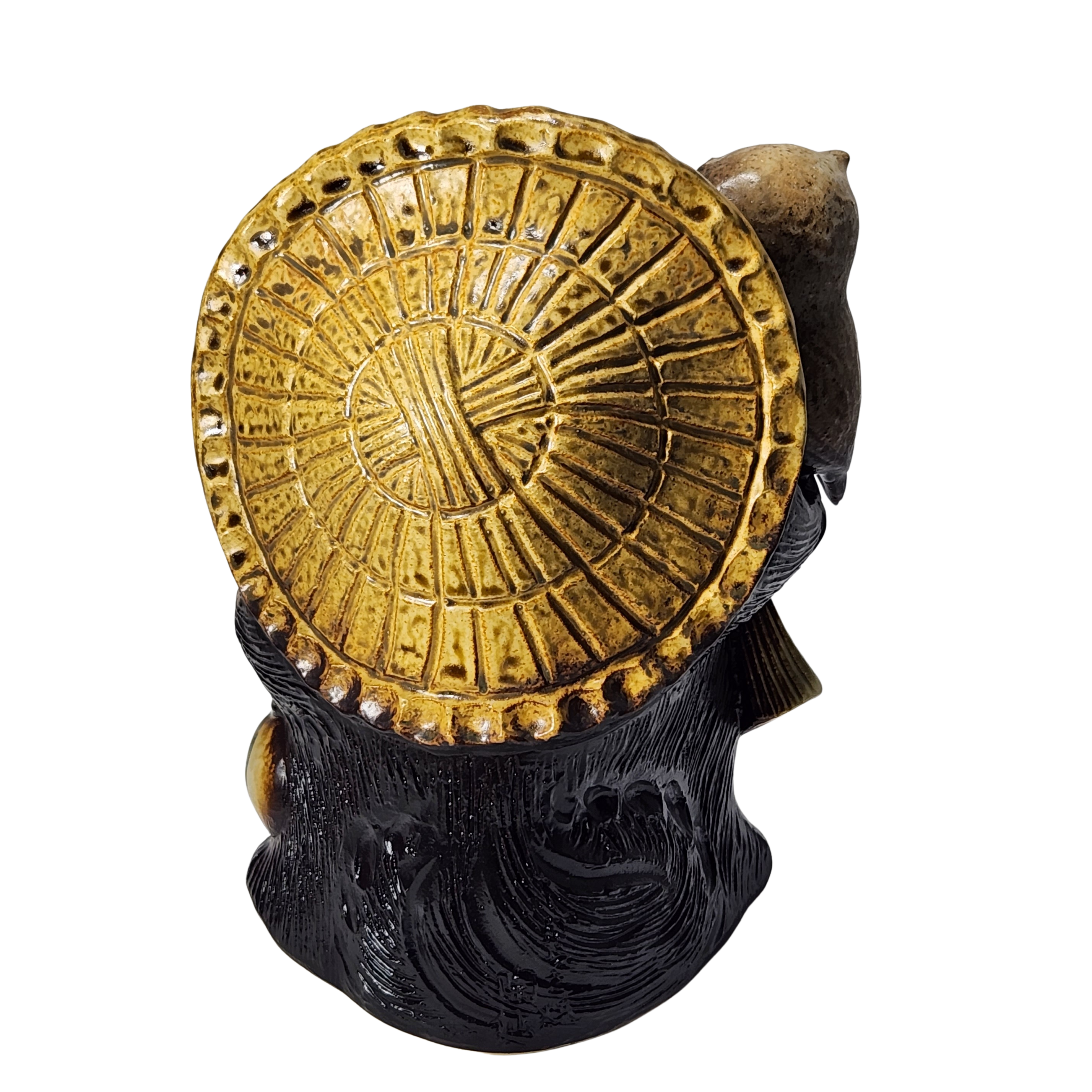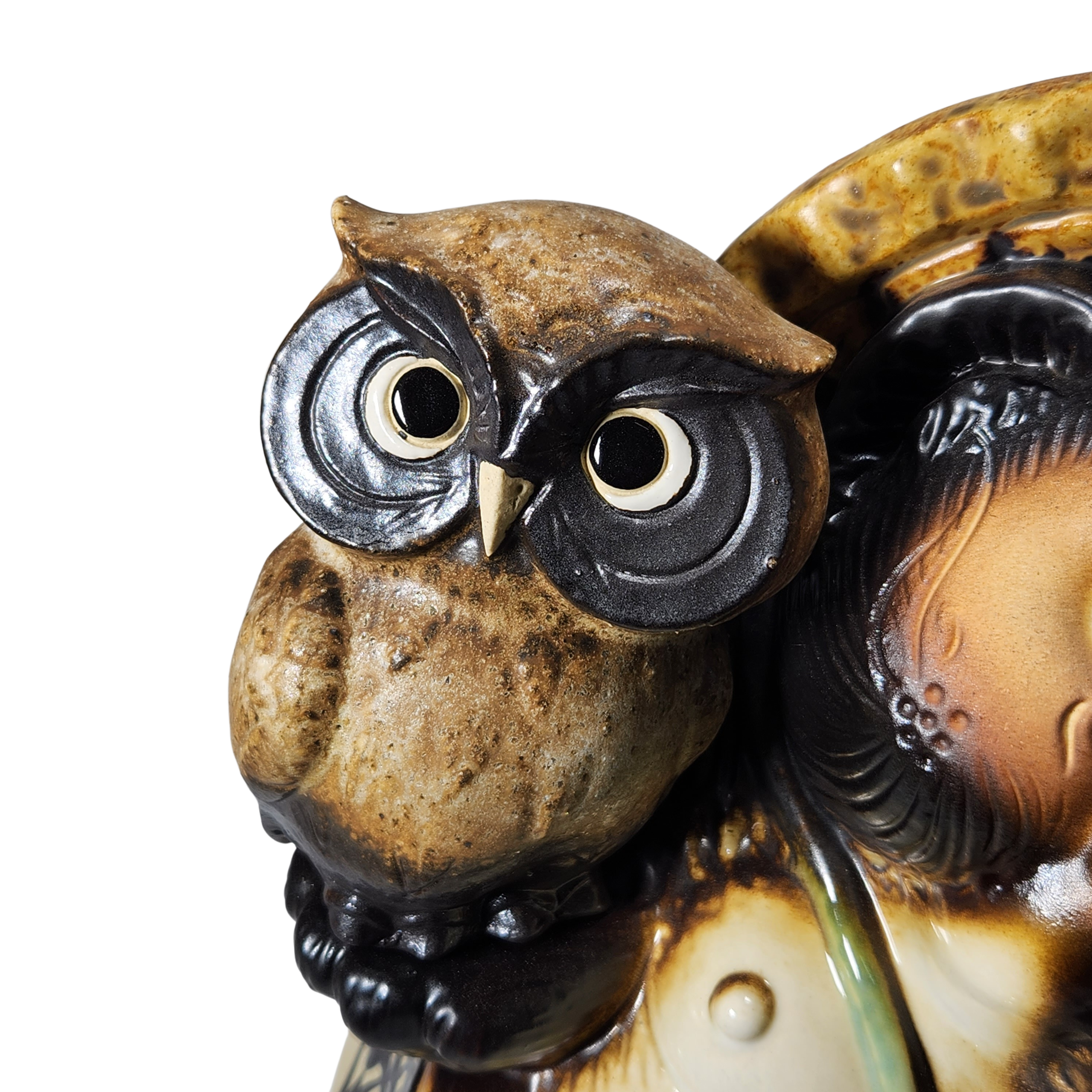 しっかりとした造りの陶器特有の温もりを感じられるこの置物は、実用性と美しさが見事に調和しています。存在感のある大きさと独自の形状は、飾る場所に華やかさを添え、インテリアのアクセントとして活躍してくれます。また、ふくろう付きという特異なモチーフが、あなたの生活空間に遊び心をもたらしてくれます。