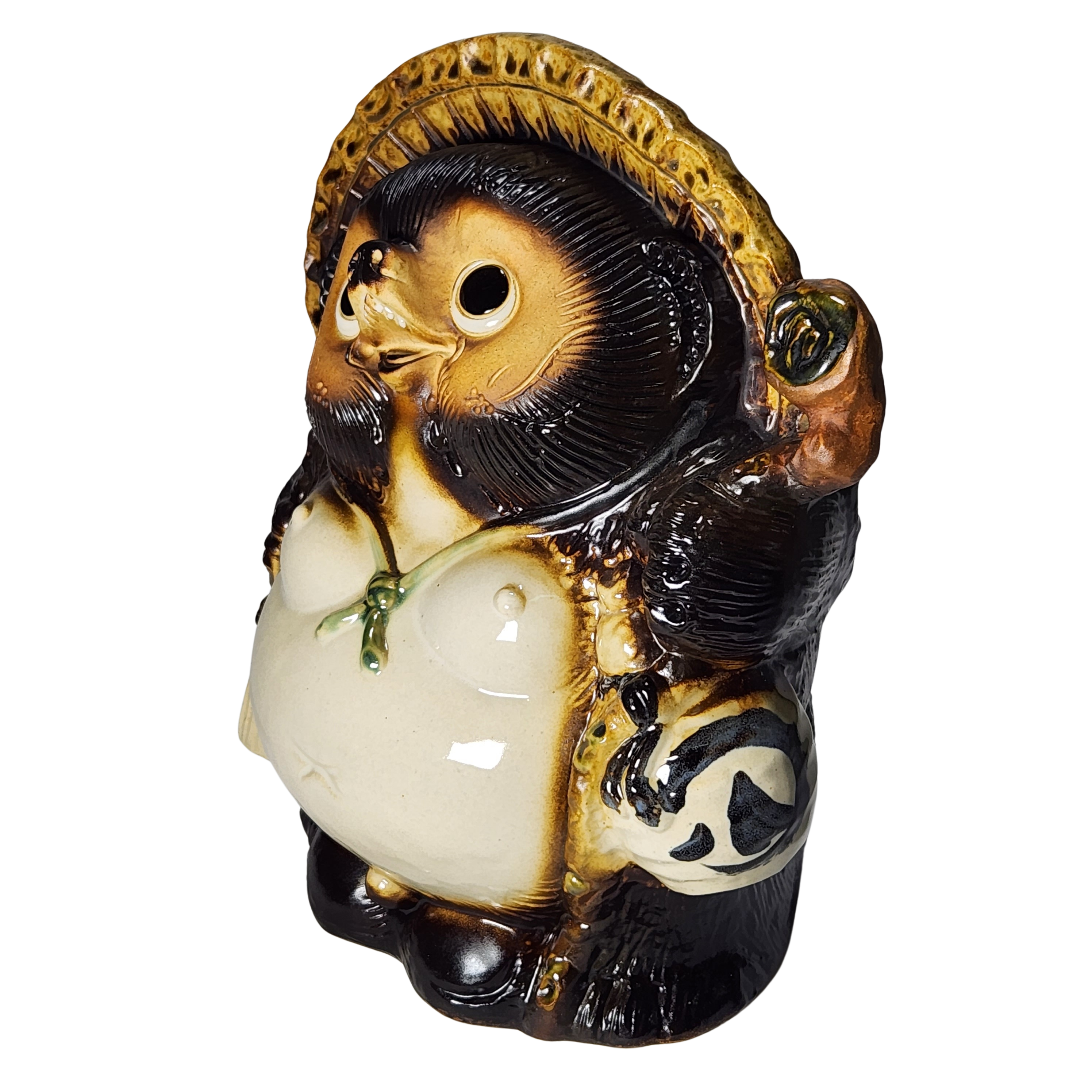 陶器特有の質感が感じられるこの置物は、実用性だけでなく美しさも兼ね備えています。飾る場所を選ばず、リビングや玄関、お庭などさまざまなシーンで活躍します。また、この福狸は特に「幸運」を願うモチーフとして、多くの人々に愛され続けています。