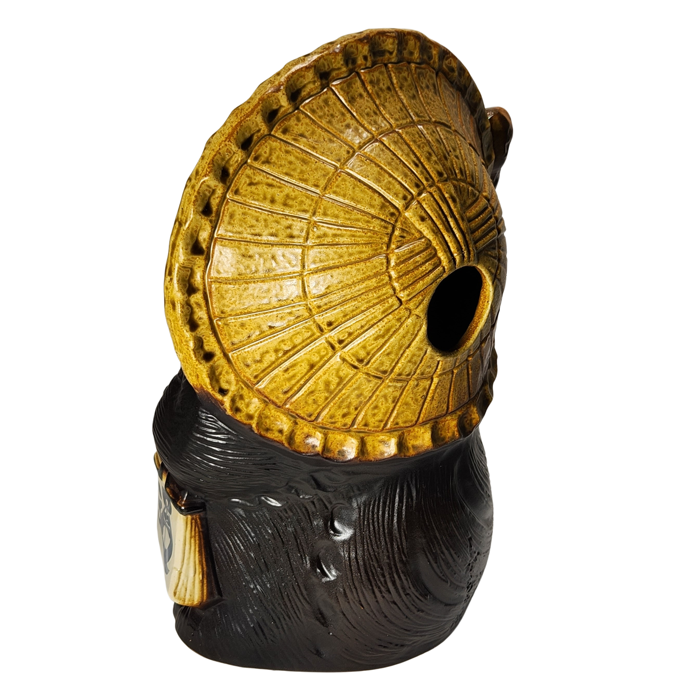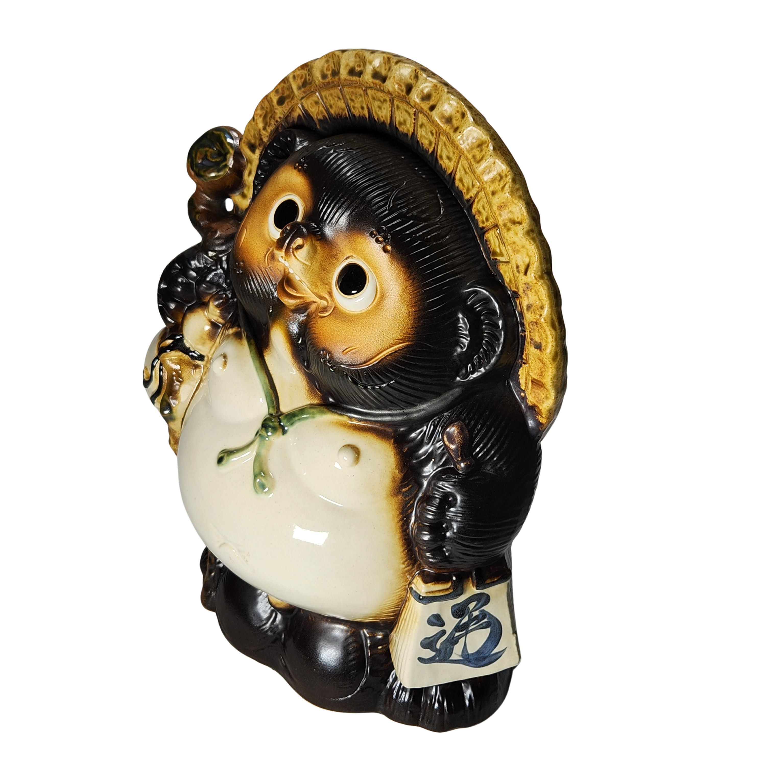 陶器ならではのしっかりとした質感が感じられるこの福狸は、実用性と美しさを兼ね備えています。どっしりとした造りは、安心して飾ることができ、存在感も抜群です。また、愛らしい表情は、日常の生活に遊び心を加え、癒しの空間を演出します。