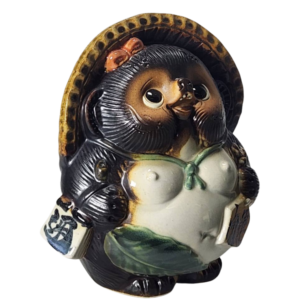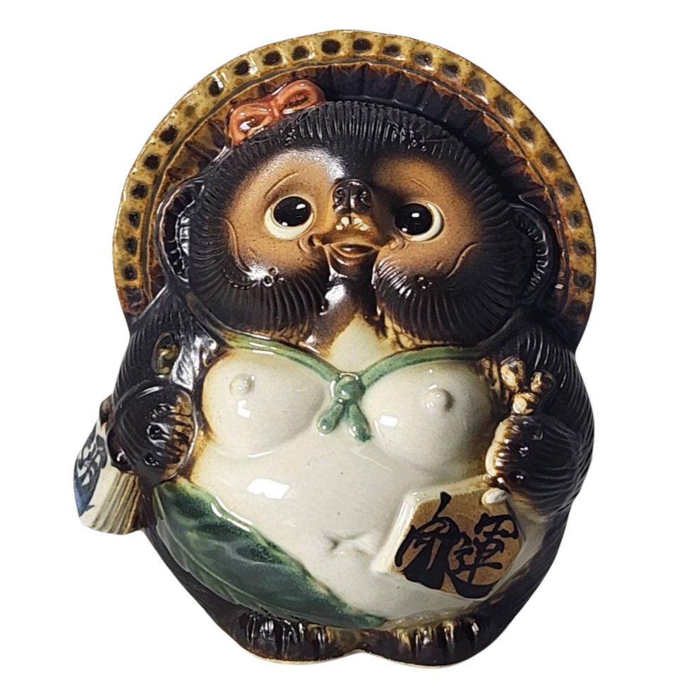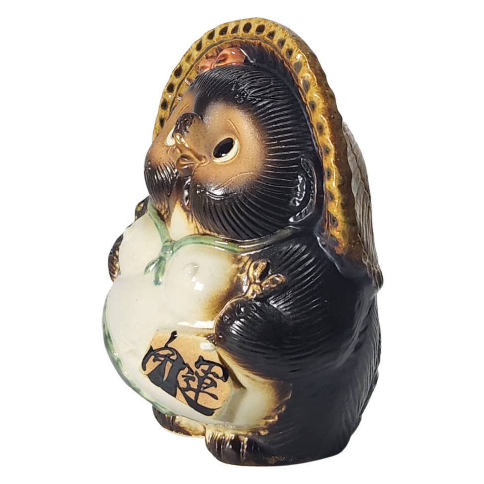 陶器特有の温もりを感じられるこの置物は、実用性と美しさが見事に調和しています。しっかりとした造りは、安心して飾ることができ、独自の存在感を放ちます。また、お願い狸というユニークなモチーフが、あなたの生活空間に幸せをもたらしてくれます。
