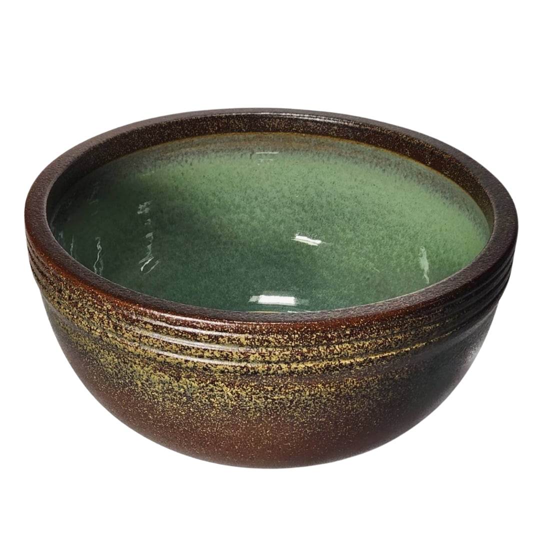 窯肌ボウル水鉢 13号 /睡蓮鉢は、信楽焼の技術を活かして熟練の職人が手作りした優れた陶器製の水鉢です。その深い色合いと独特の窯肌が特徴で、自然な美しさを引き立てる逸品です。この水鉢は、小さなめだかや金魚を飼育するインテリアとしてだけでなく、水草を育てるための素晴らしい選択肢です。