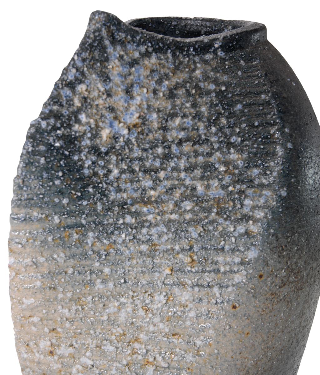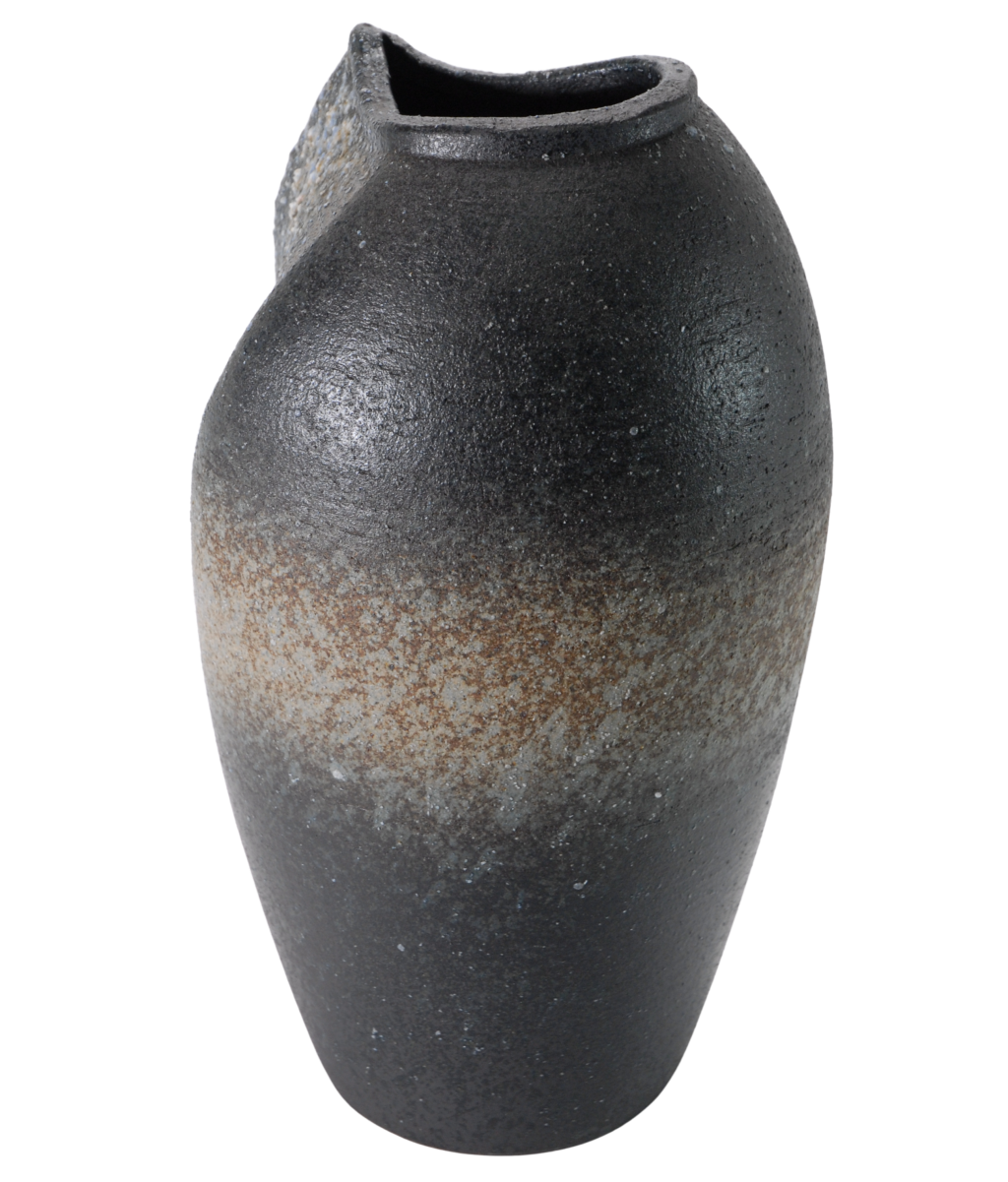 美しい曲線を描く扇面型のシルエットは、視覚的な楽しさを生み出し、日常の暮らしに彩りを添えます。陶器ならではの温もりを感じられるこの花器は、実用性と美しさを見事に両立させています。