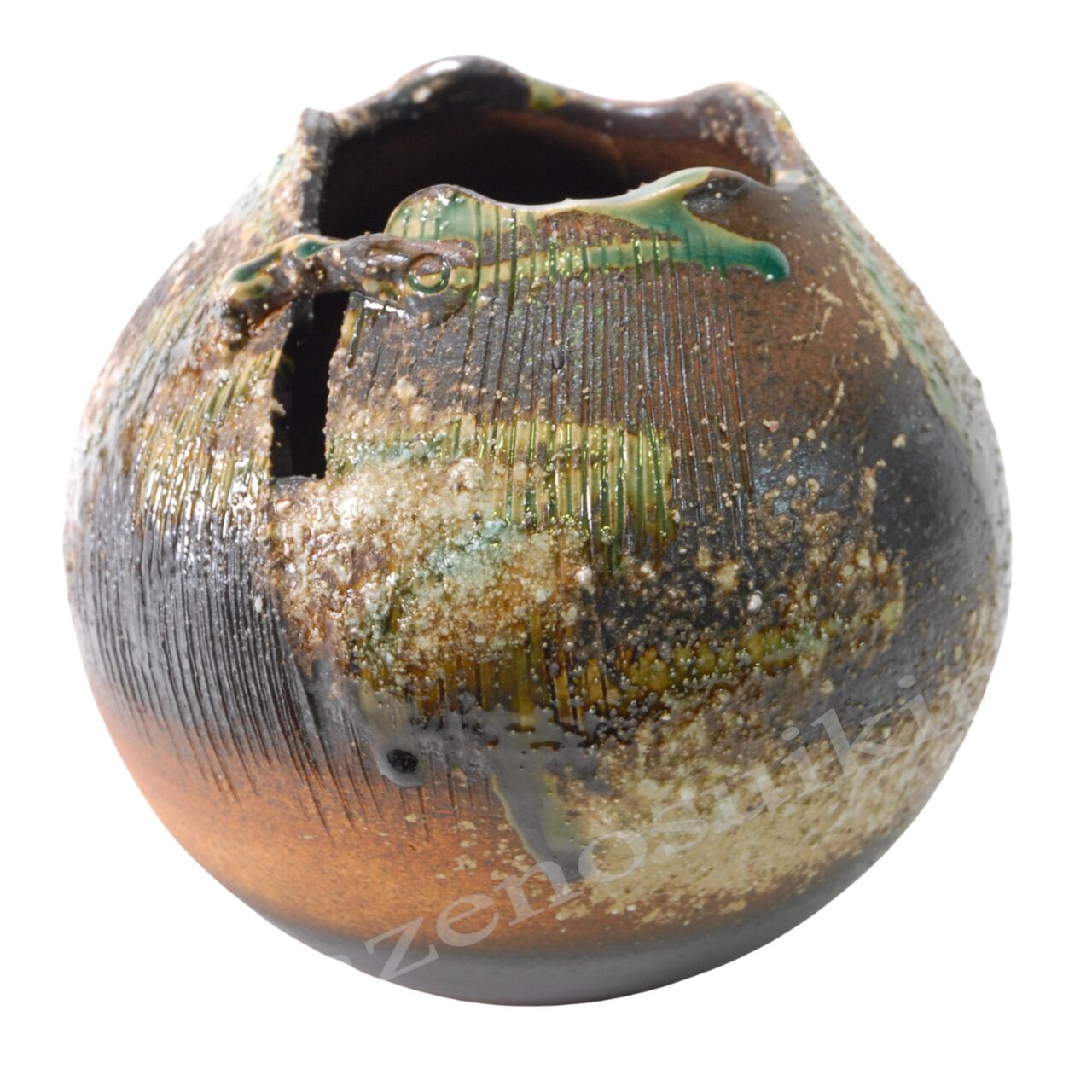 織部手付花瓶 6.5号 (信楽焼き・花瓶・花入れ・花器・壺・壷・一輪挿し・フラワーベース・B011-03)