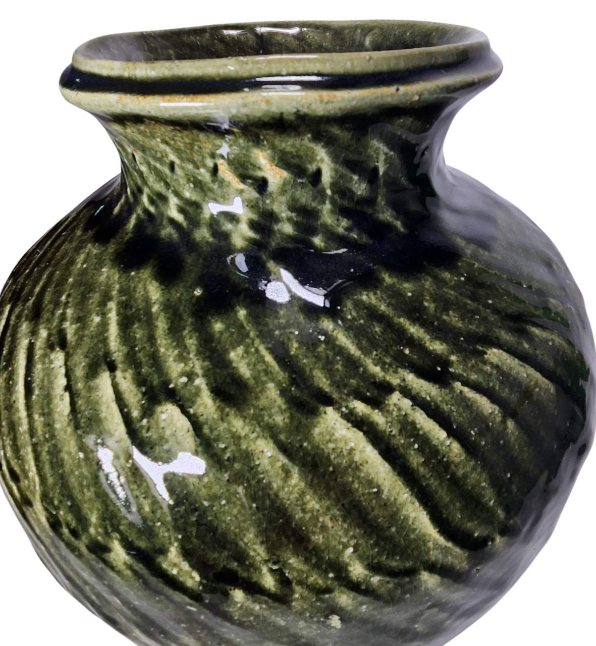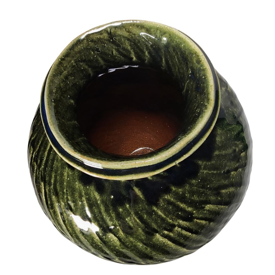ひねりのあるデザインは、視覚的な楽しみを生み出し、日常の暮らしに華やかさを添えます。陶器特有の温かみを感じることができるこの花器は、実用性と美しさを見事に両立させています。